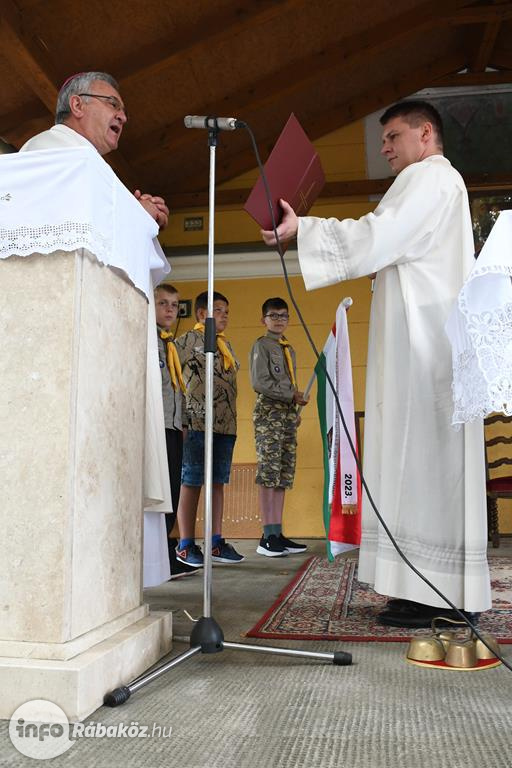Az ünnepi alkalmon négy kiscserkész tett ígéretet a püspöki szentmisét követően. Az ígérettételt Szár Gyula Gergely OPraem csapatparancsnok vezényelte le, majd a közösség életében szintén kiemelkedő eseményként Dr. Veres András püspök úr megszentelte a szanyi Szent Anna Raj új zászlóját.